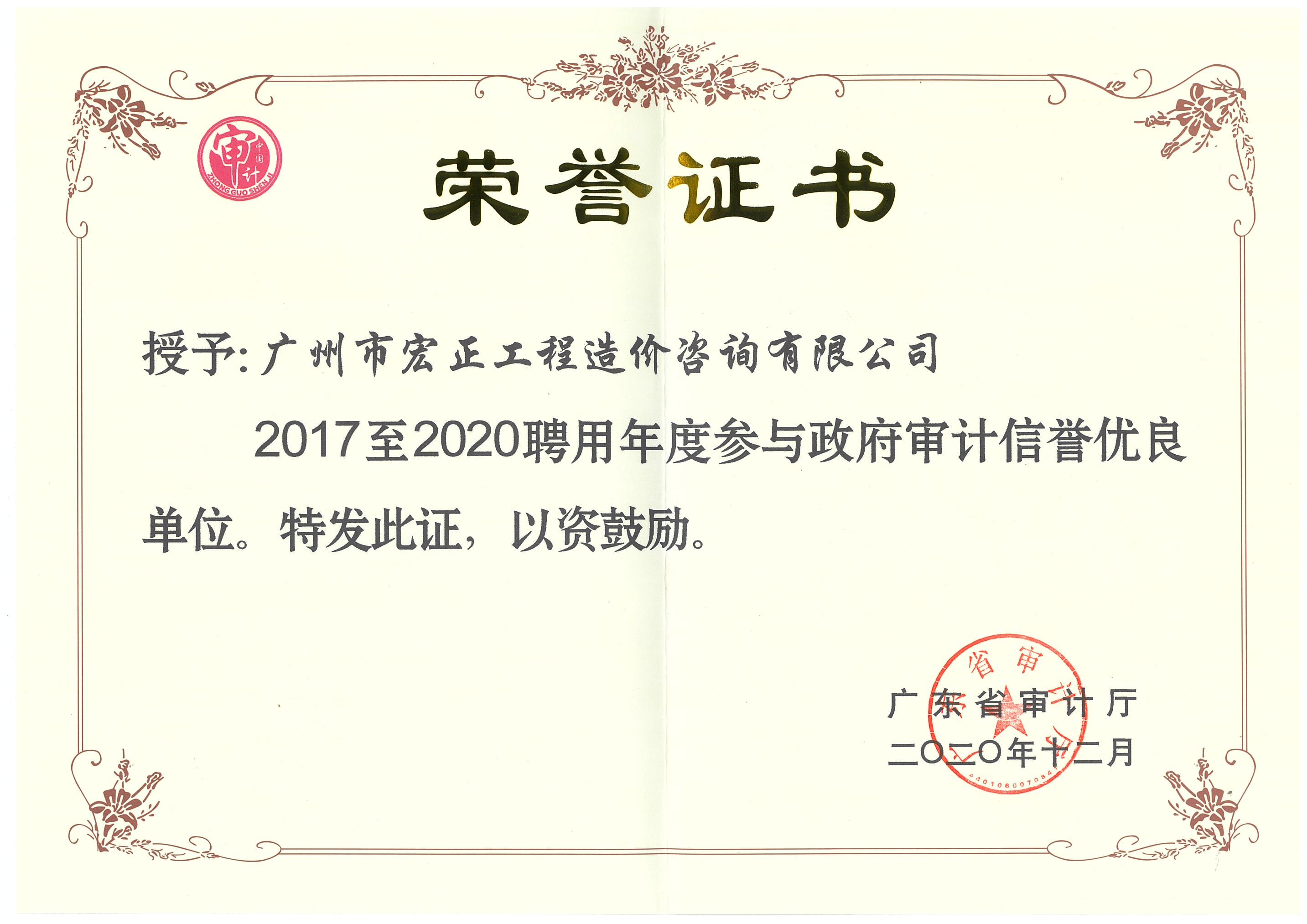 廣東省審計(jì)廳信譽(yù)優(yōu)良單位(2017年至2020年)